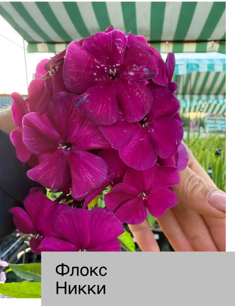 Флокс Никки — это среднерослый кустарник высотой до 70 см, который радует глаз своими крупными соцветиями. Цветы имеют насыщенный фиолетово-розовый оттенок с белыми звездчатыми центрами, создавая эффектный и запоминающийся вид. Цветение начинается в середине лета и продолжается до осени, наполняя ваш сад яркими красками и сладким ароматом.
