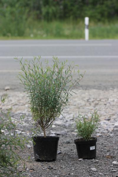 Ива пурпурная `Nana` - кустарник с округлой, густой кроной, с многочисленными тонкими, изящными побегами. Высота и диаметр взрослого растения до 1,5-2 м. Цвет побегов с выраженной краснотой, покрытой сверху легким сизым налетом. С возрастом цвет побегов меняется на серо-зеленый