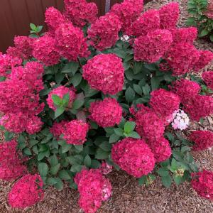Гортензия Самарская Лидия имеет красно рубиновые соцветия в конце цветения, подобное цветение можно наблюдать у даймонд руж и фрайз мельба.