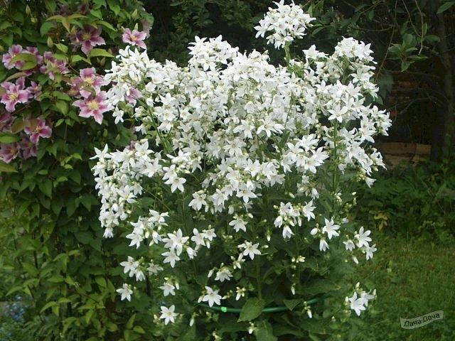 Компактный, шаровидной формы куст, до 50 см. Цветки белые, звездчатые. Во время цветения куст полностью покрыт белым облаком цветов.